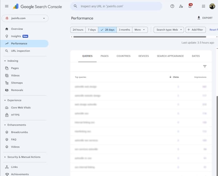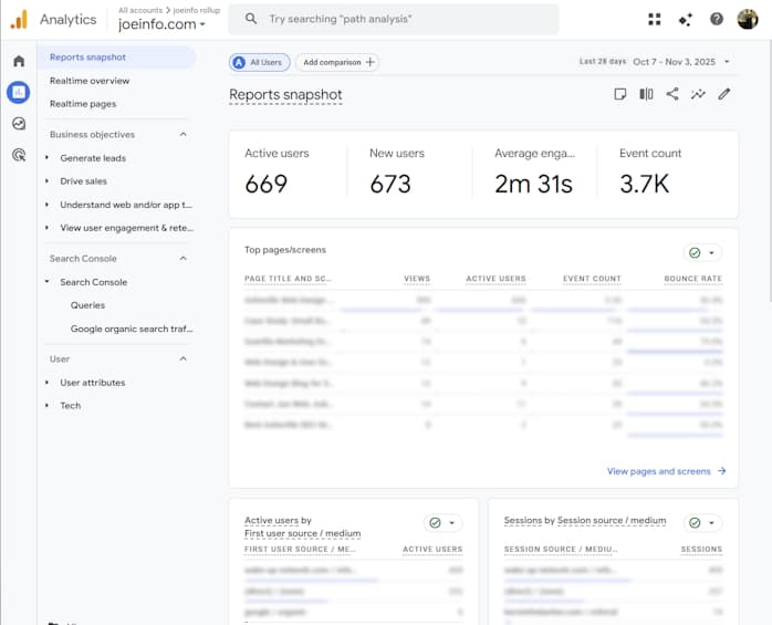Once Analytics and Search Console are connected, focus on these four core reports: